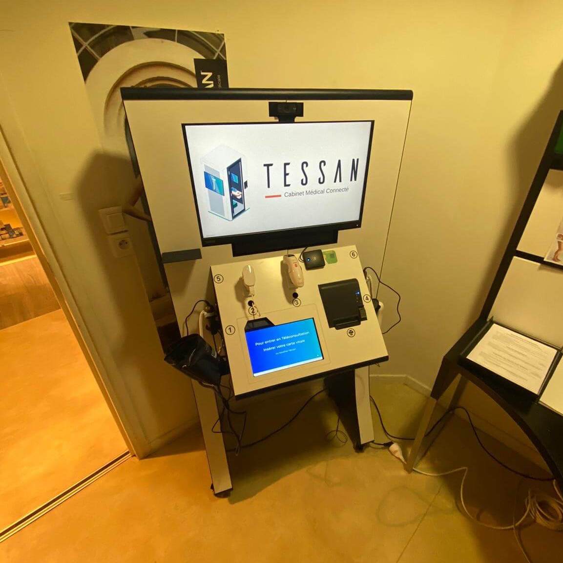En entrant dans cette pièce confidentielle, les patients sont accueillis dans un environnement discret et professionnel, propice à une consultation médicale de qualité. La borne de téléconsultation Tessan, équipée de technologies de pointe, permet une interaction en temps réel avec un médecin généraliste qualifié.